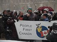 In the accompanying photo, Susan Ralph and colleagues parade to Parliament Hill with the CCD Banner. The destination was the Centennial Flame. Once at the Flame, national organizations held a public education session, with groups reporting on their number one priority for action.